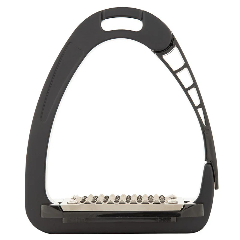 De beugels zijn uitgerust met een scharnierend veiligheidsmechanisme met een kleine voetstop. Het gewicht van de ruiter zorgt ervoor dat de beugel opent bij een val. Op deze manier blijft de voet niet in de beugel hangen. De voetstop zorgt ervoor dat de beugel alleen opengaat, als dat echt noodzakelijk is. Zodra de voet de beugel verlaten heeft, sluit de beugel zich gemakkelijk met een klik.