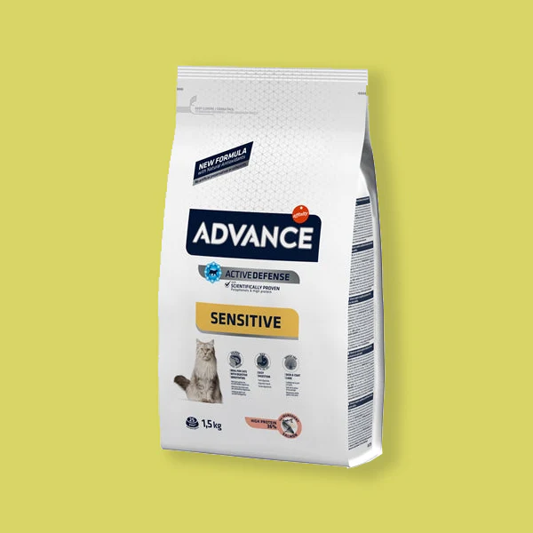 Het kattenvoer van Advance is niet alleen lekker, maar ook nog eens heel gezond, purrfect als je het mij vraagt! Deze variant is speciaal samengesteld voor gevoelige katten die snel problemen hebben met de spijsvertering. Het voer is bevat licht verteerbare eiwitten en koolhydraten uit zalm en rijst die de spijsvertering vergemakkelijken. Advance Adult Sensitive Kattenvoer 1,5 kg is een compleet kattenvoer speciaal voor katten met een gevoelig spijsverteringsysteem.