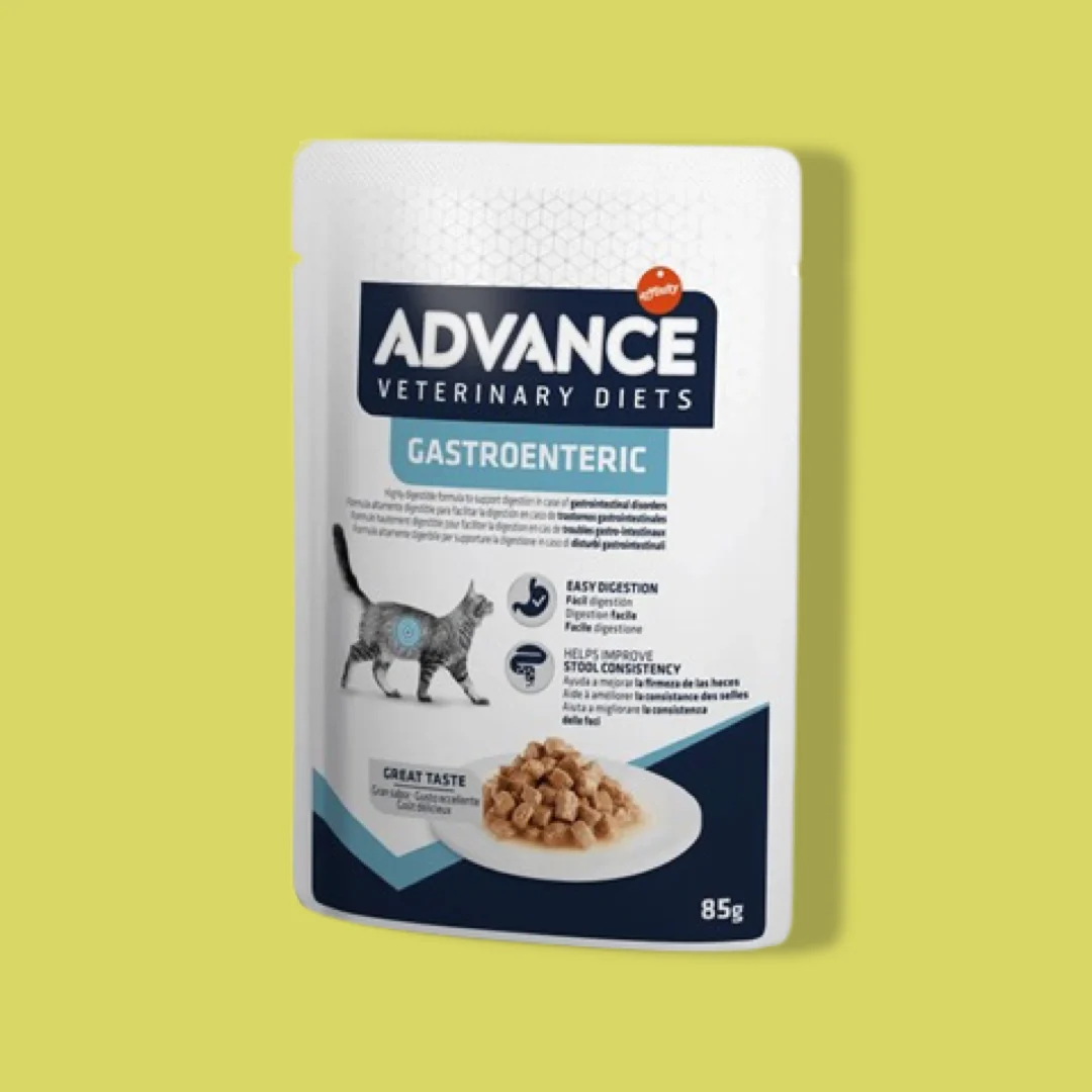 Advance Veterinary Diet Cat Gastroenteri is een compleet (volledig) dieetproduct voor katten die een slechte spijsvertering hebben. Deze natvoeding is bereid met goed verteerbare ingrediënten, een laagvezelgehalte en een hoger gehalte aan natrium en kalium. Het bevat geselecteerde eiwitbronnen om de vertering gemakkelijker te laten verlopen en prebiotica voor de positieve ontwikkeling van de darmflora.
