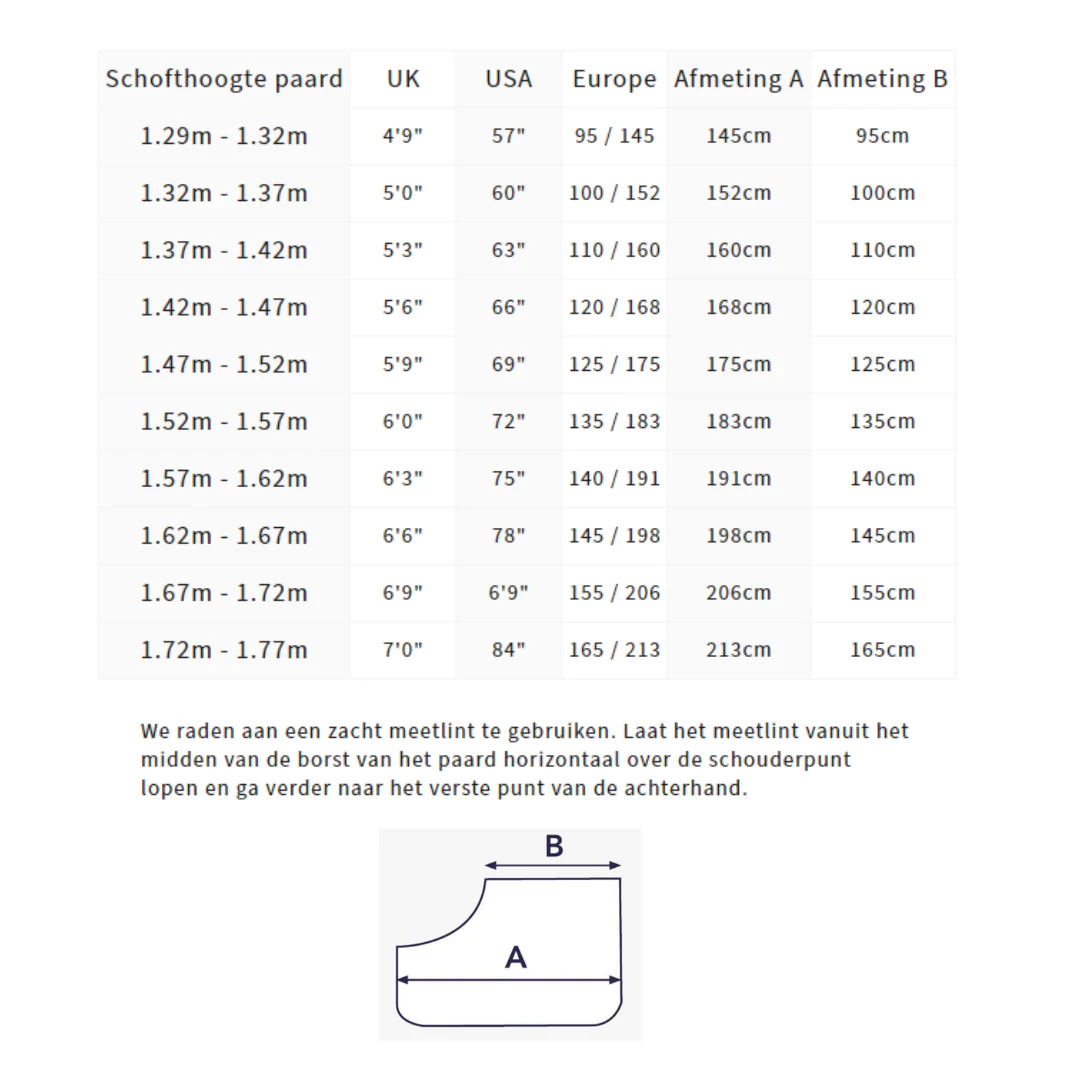 Je kunt uit verschillende diktes vulling kiezen om de deken af te stemmen op de behoeftes van jouw paard. De thermobonded vulling hoopt niet op en verschuift niet, zelfs niet als het nat is.