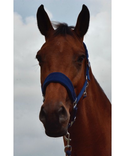 Luxe fleece gevoerde nylon halsters op neus en hoofdband met zware fournituren.. Dit halster is op 3 plaatsen verstelbaar