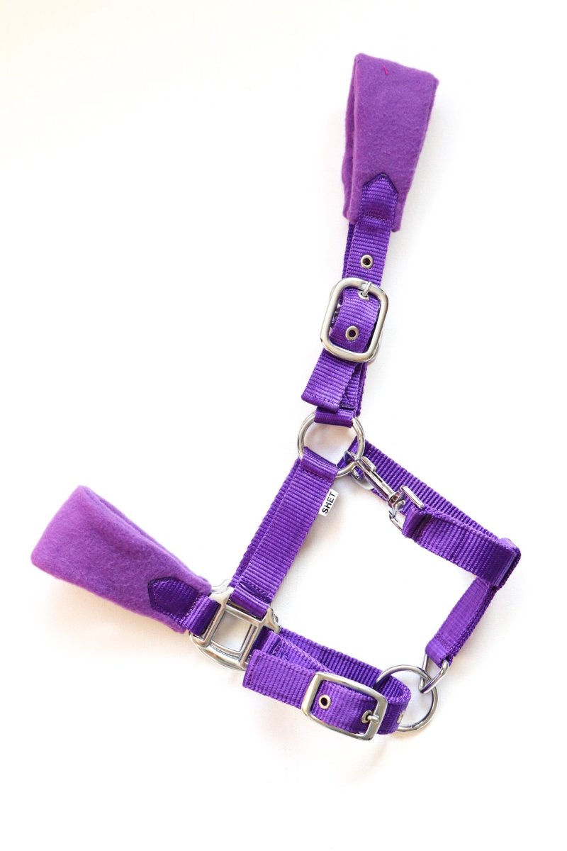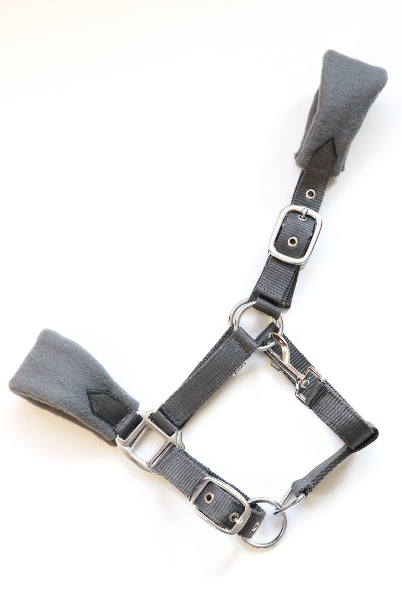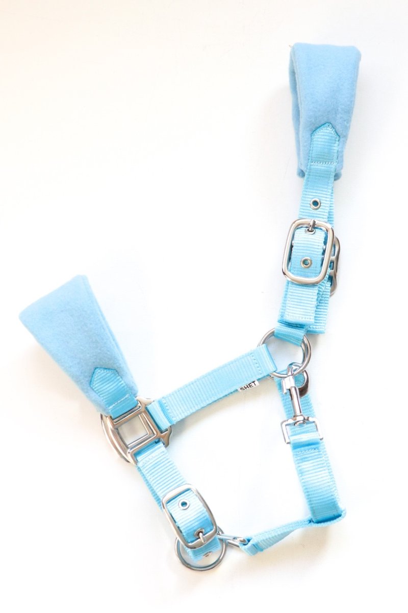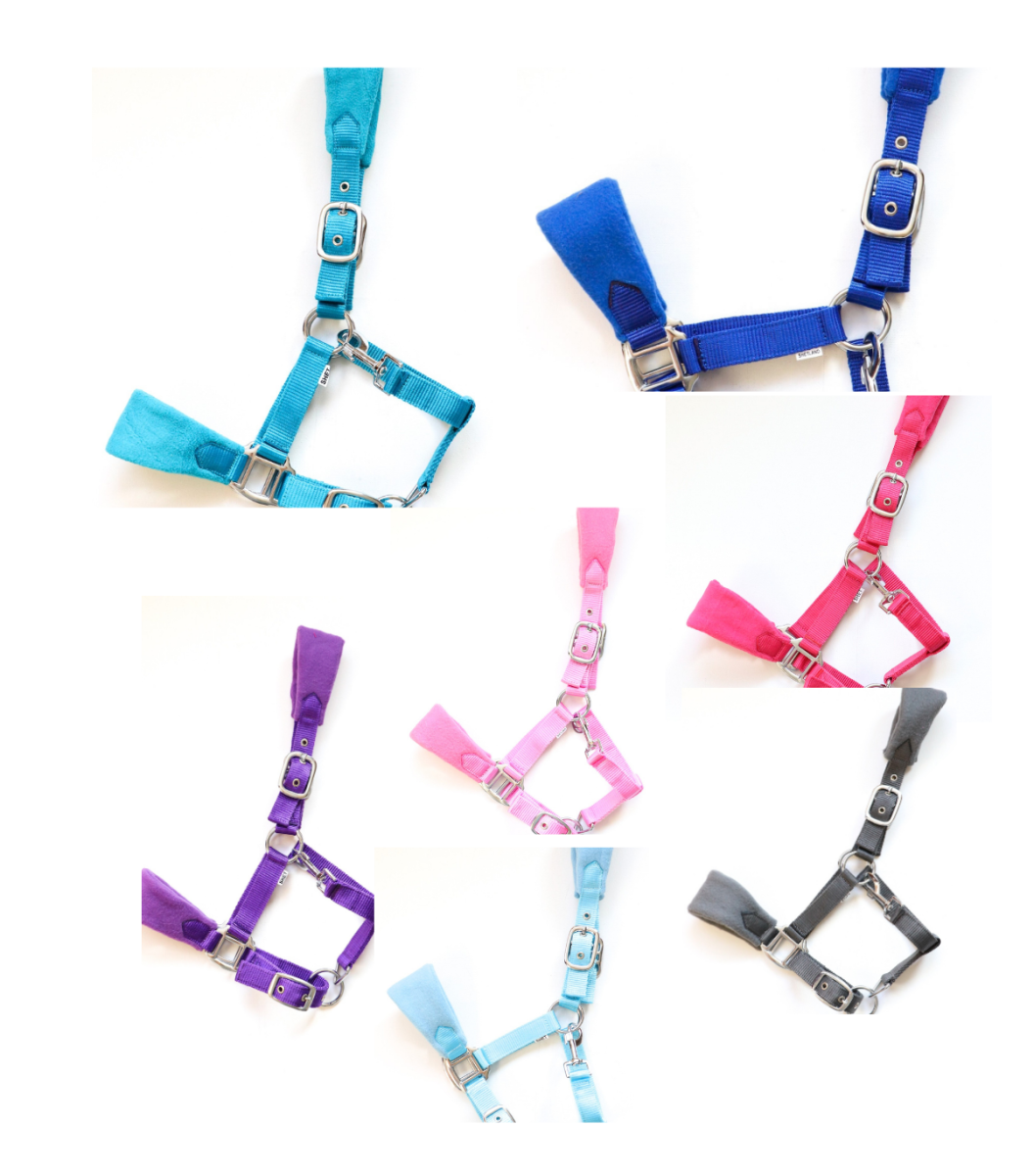 Luxe in diverse kleuren verkrijgbare fleece gevoerde nylon halsters op neus en hoofdband. De halsters hebben zware fournituren. Dit halster is op 3 plaatsen verstelbaar