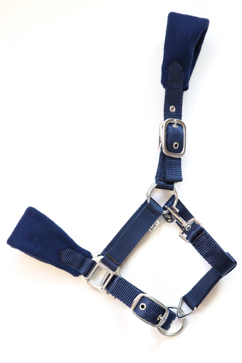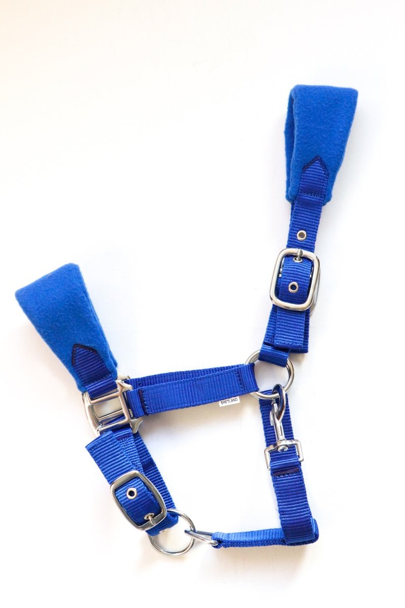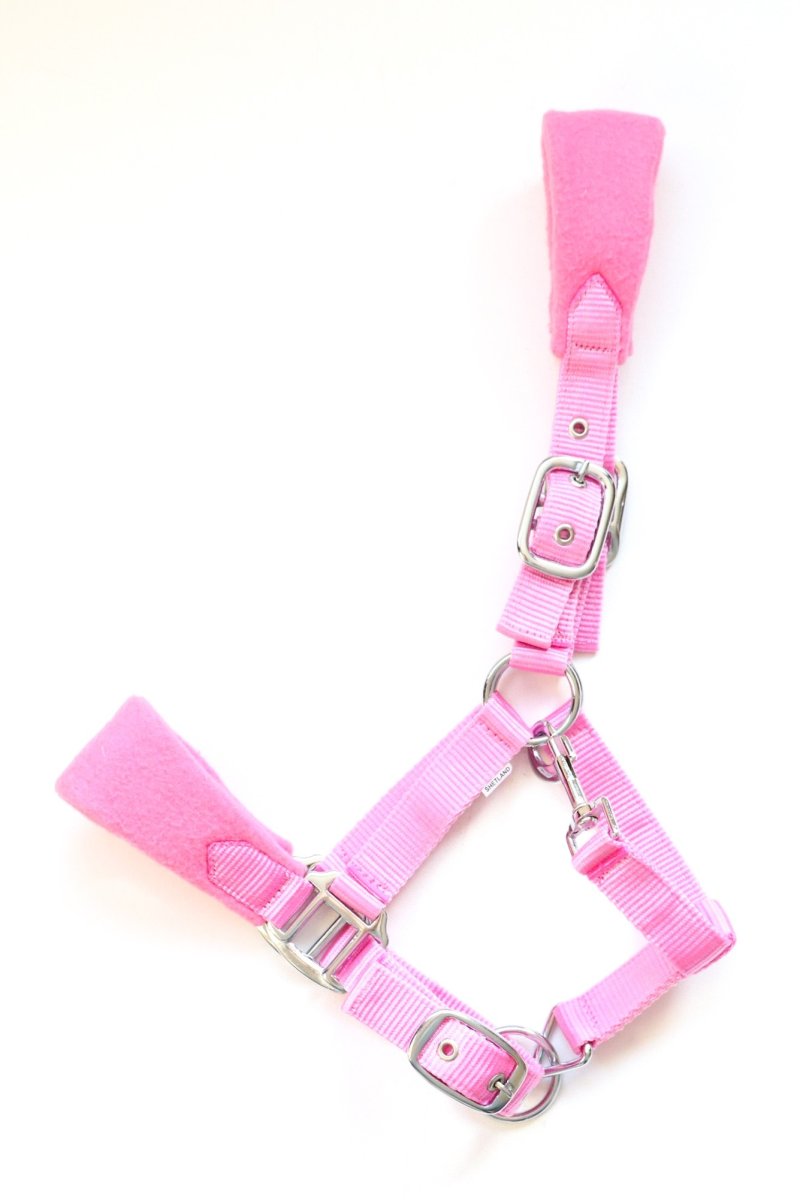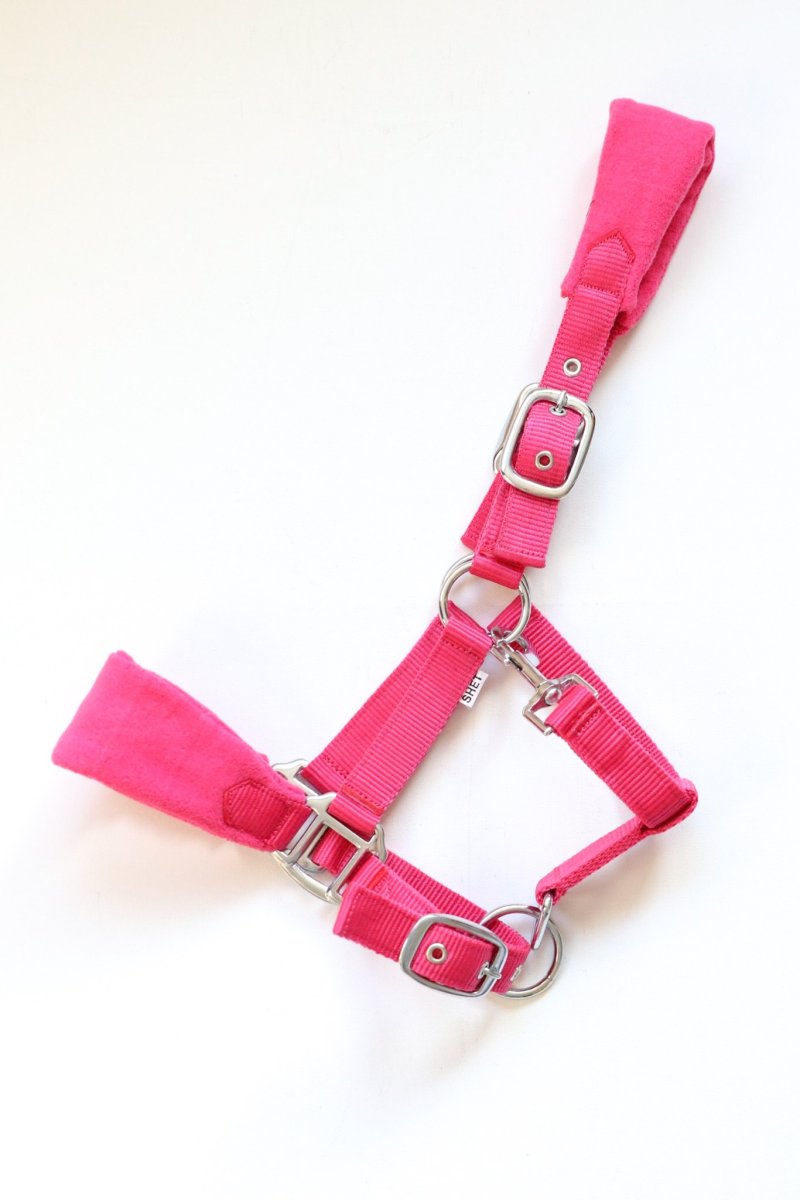 Luxe in diverse kleuren verkrijgbare fleece gevoerde nylon halsters op neus en hoofdband. De halsters hebben zware fournituren. Dit halster is op 3 plaatsen verstelbaar