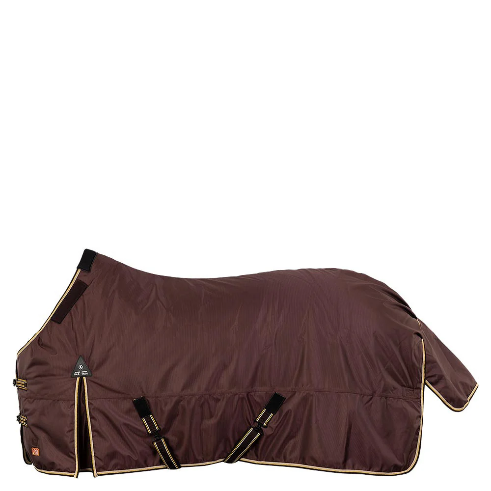 De vulling van deze deken is verdeeld over drie zones met verschillende diktes: 340 gr, 200 gr en 100 gr. Dit houdt je paard extra warm op de plekken waar dat nodig is. Door de verschillende grammages is het totale gewicht van de deken lager, waardoor de deken gebruiksvriendelijk en lichtgewicht is.