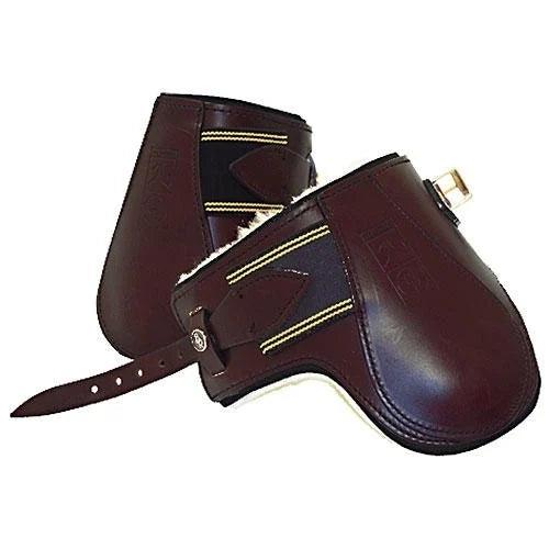 Lederen strijklappen, met koperen gespen en wasbare, medicinaal gelooide Christ schapenvacht. Door de neopreen/jersey voering zijn de strijklappen ook zonder schapenvacht te gebruiken