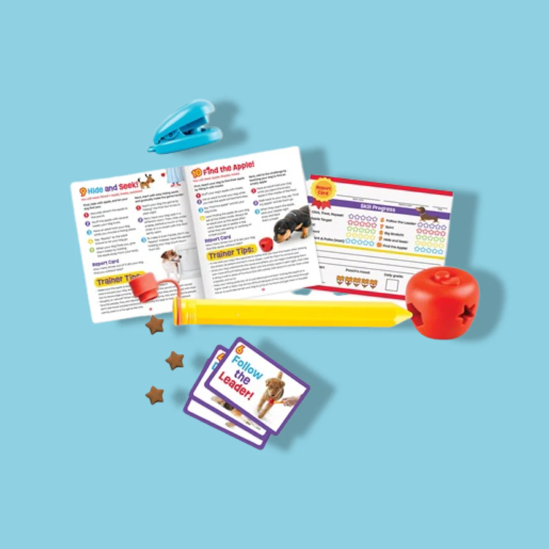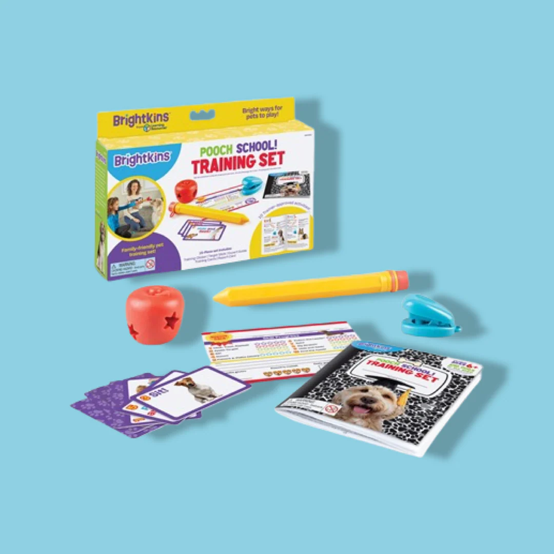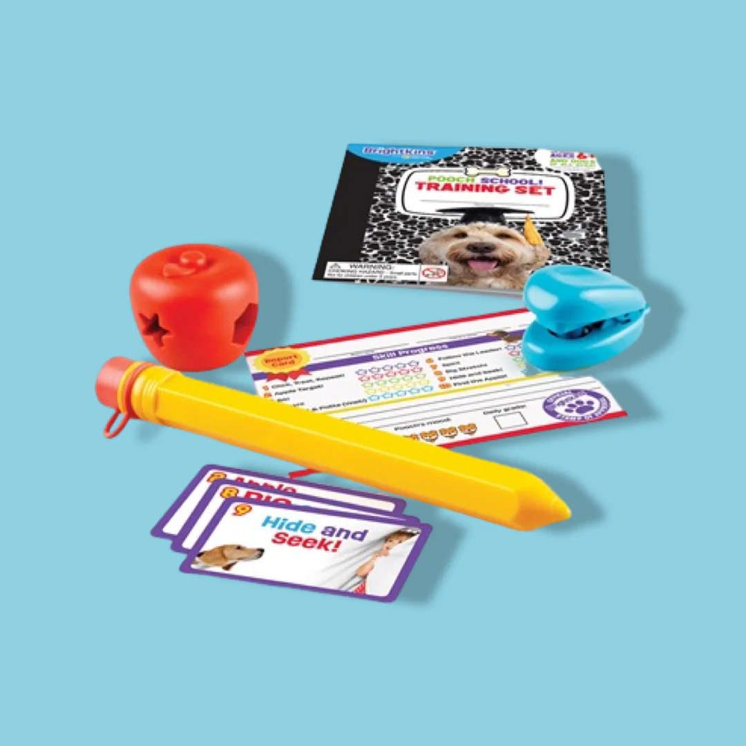 Honden zijn dom? No way, vooral niet als je ze de Brightkins Pooch School Training Set geeft. Dit hondenspeeltje zorgt ervoor dat de intelligentie van je trouwe viervoeter getraind wordt. Ik zie je denken, hoe dan? Nou, de Brightkins Pooch School Training Set is een set van tien verschillende speeltjes en trainingsmiddelen voor de hond. Leer jouw hond 10 essentiële skills met deze trainingsset. De tien verschillende attributen bieden uren lang leer- en speelplezier. De instructiegids is geschreven door een gecertificeerde, professionele hondentrainer en te gebruiken door het hele gezin. Woehoe(f), wat een pawtastisch speeltje!
