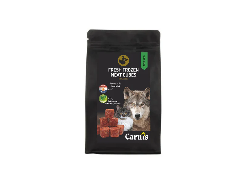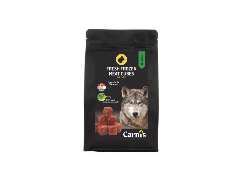 Op zoek naar een gezonde, gemakkelijke en complete diepvries vleesvoeding voor je hond? Onze Carnis Cubes zijn kleine, handige blokjes diepvries vlees in porties van 25 gram, waarmee je eenvoudig kunt doseren en afwisselen. Door het compacte formaat zijn ze ideaal voor kleine hondenrassen. Ze ontdooien snel, zijn 100% natuurlijk en bevatten alles wat je hond dagelijks nodig heeft.