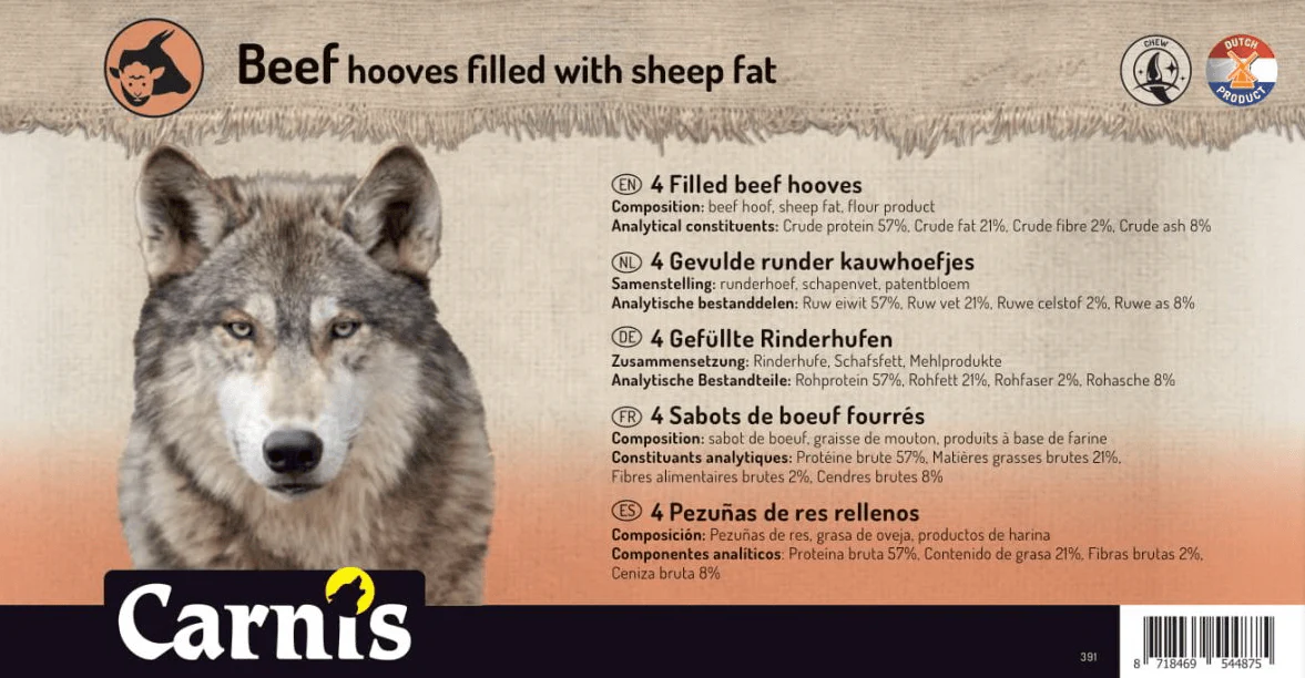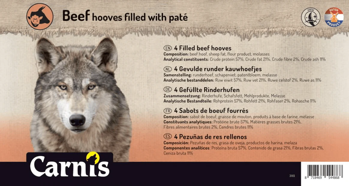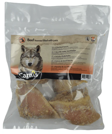 Carnis gevulde hoefjes zijn een lekkere kauwsnack met smakelijke vulling. Stimuleert het natuurlijke kauwgedrag.