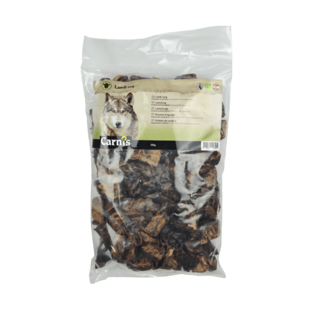 Verwen je hond met de heerlijke Carnis Lamslong – een puur gedroogde, 100% natuurlijke snack boordevol smaak. Deze luchtige, broze stukjes lamslong zijn licht verteerbaar en daardoor ideaal als tussendoortje of beloning tijdens de training.