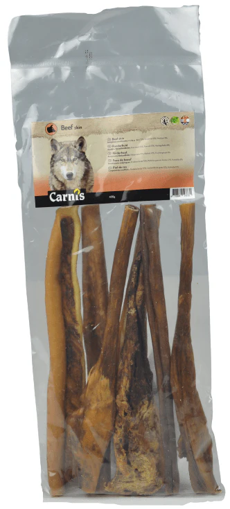 Carnis runderhuid is een smakelijke kauwsnack met een stevige bite. 100% natuurlijk. Kauwen stimuleert de speekselaanmaak, wat bijdraagt in het voorkomen van tandsteenvorming. De stukken runderhuid zijn tussen de 20 en 40 cm lang.
