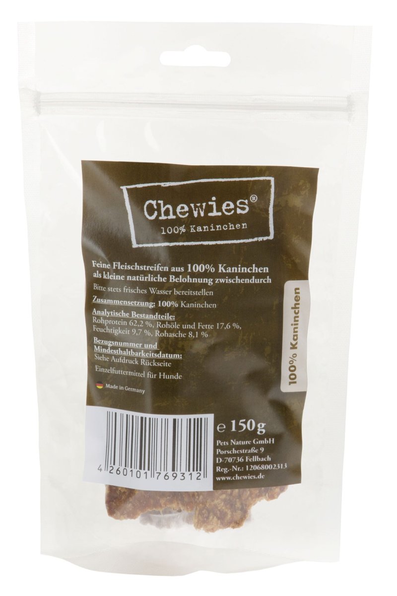 Deze vleessnacks van Chewies worden geproduceerd in Duitsland en gemaakt van grondstoffen die afkomstig zijn van lokale leveranciers. Enkel het kangoeroevlees wordt geïmporteerd uit Australië. Deze pure strips zijn een heerlijke beloning voor iedere hond. Daarnaast zijn de luchtgedroogde traktaties vrij van toevoegingen.