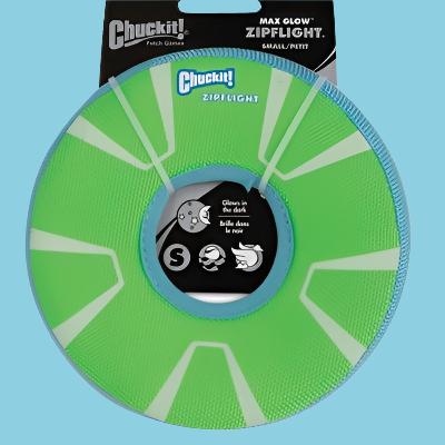 De Chuckit Max Glow Zipflight Frisbee is een Glow In The Dark is hondenspeelgoed dat oplicht in het donker en drijft op water. Ideaal voor doorspelen tot in de kleine uurtjes! De frisbee licht op in het donker en blijft daardoor ook ’s avonds goed zichtbaar voor jou en je hond. Zo kun je op vakantie, op late zomeravonden in de winter naar hartenlust met jouw hond blijven spelen. De combinatie van opvallende kleur rubber en de glow in the dark-techniek maakt hem goed zichtbaar in het donker. Leg de frisbee simpelweg tien minuten in licht en geniet dan gedurende 30 minuten van de oplichtende gloed. Ook drijft deze frisbee op water, waardoor je hem ook op het strand kunt gebruiken. Van groot formaat voor meer speelplezier!