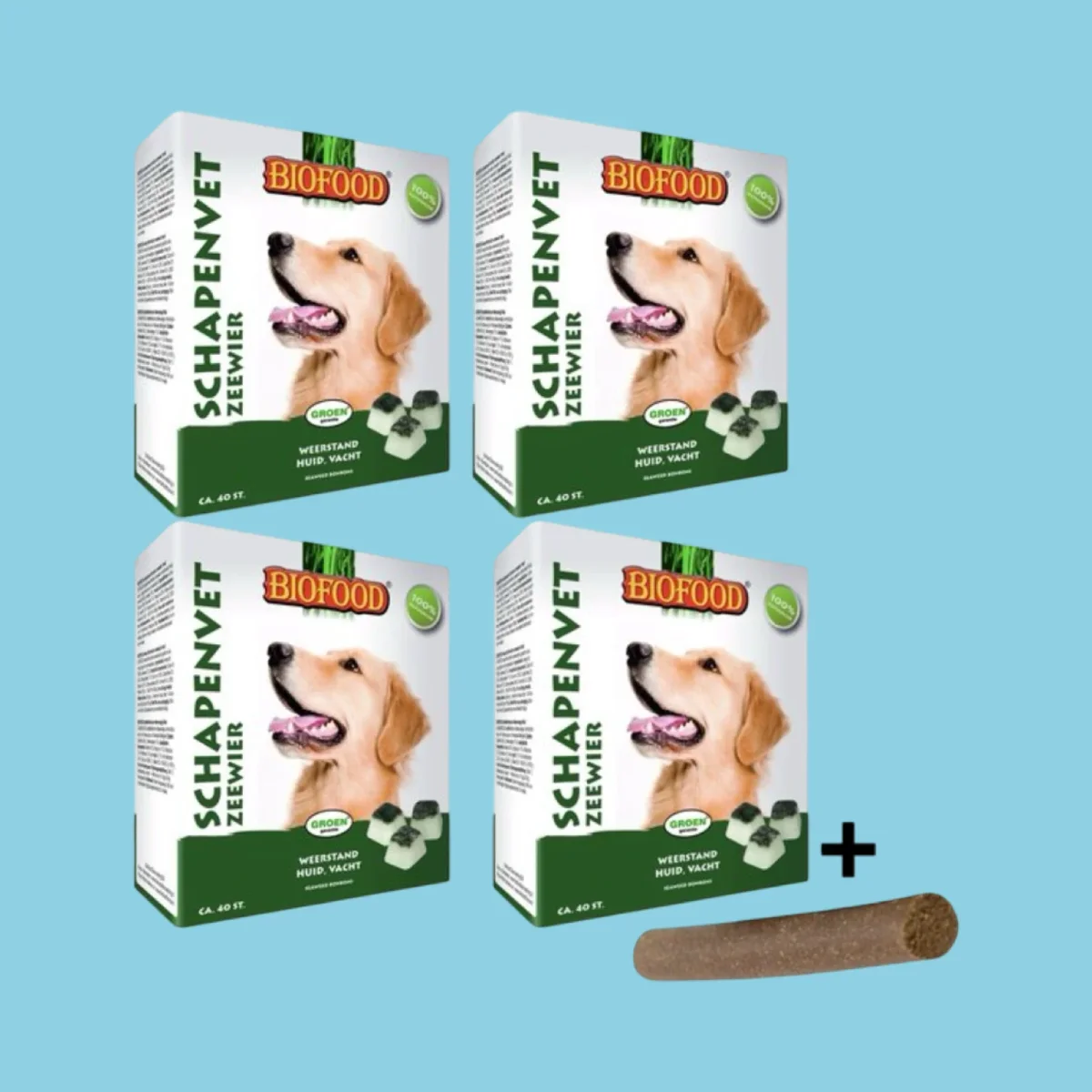 Combideal Biofood Schapenvet Maxi Bonbons Zeewier 4x 40 ST + Pawty Fricandel