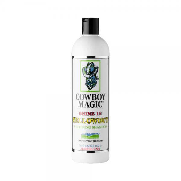 Cowboy Magic Shine In Yellowout neutraliseert gele vlekken en werkt oplichtend voor alle haarkleuren: zwart, wit, kastanje, roodbruin, roodschimmel, palomino of bont.