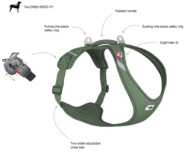 Het harnas is voorzien van de innovatieve EASY GRIP-gesp, waarmee u het harnas eenvoudig kunt openen en sluiten zonder de gesp los te laten. Zo blijft het snel en praktisch in gebruik, zelfs bij actieve honden.