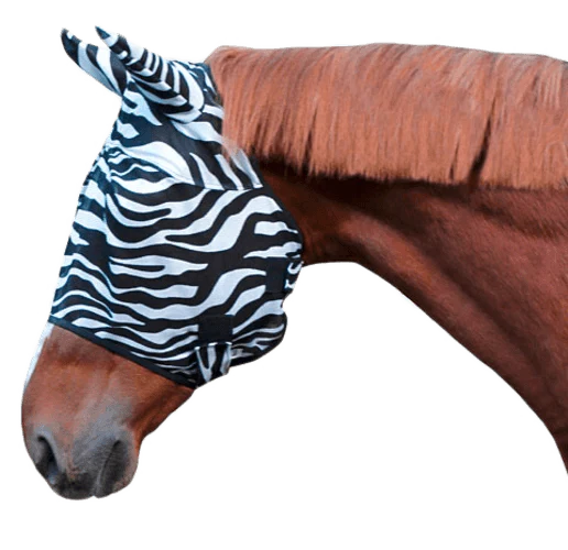 Dit vliegenmasker is makkelijk te bevestigen met klittenband en heeft een elastische band voor een perfecte pasvorm aan de vorm van het hoofd.