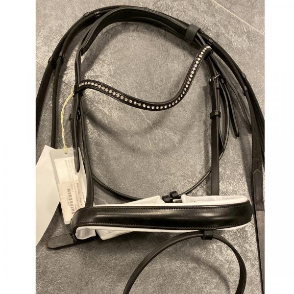 Dobert stalmeister hoofdstel inclusief teugels met wit onderlegde neusriem.
