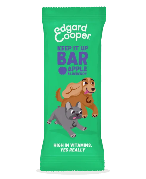 Een snack op basis van een recept zonder granen vol smak-smak-smakelijke zoete appels en sappige bosbessen boordevol vitamines voor honden van alle leeftijden.