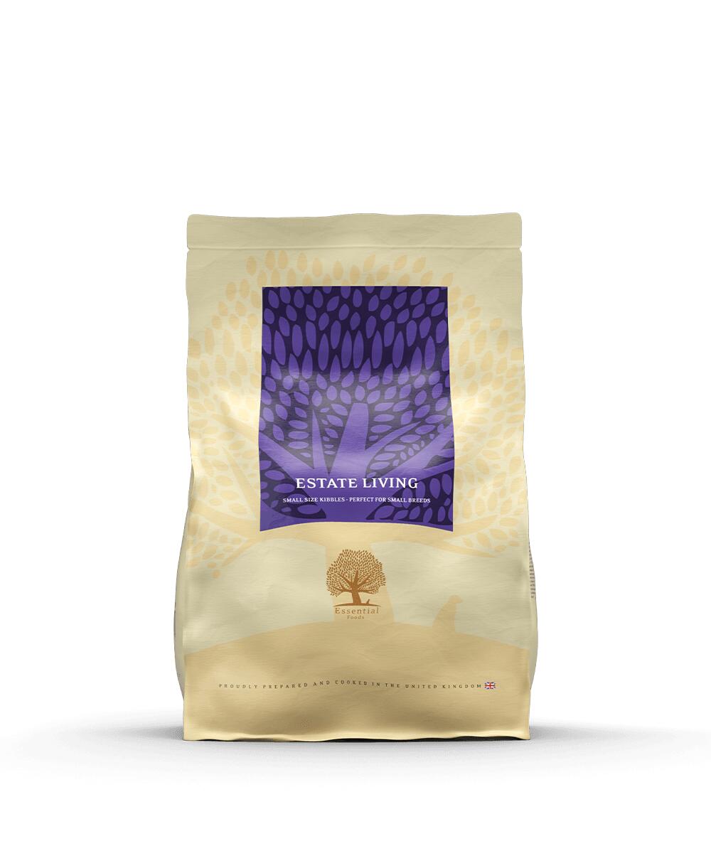 ESSENTIAL ESTATE LIVING is een unieke graan- en glutenvrije maaltijd met Welshe vrije uitloop lammeren en Schotse Edel- en damhert. Deze maaltijd is bedoeld voor volwassen honden van alle rassen met normale hoeveelheid beweging.