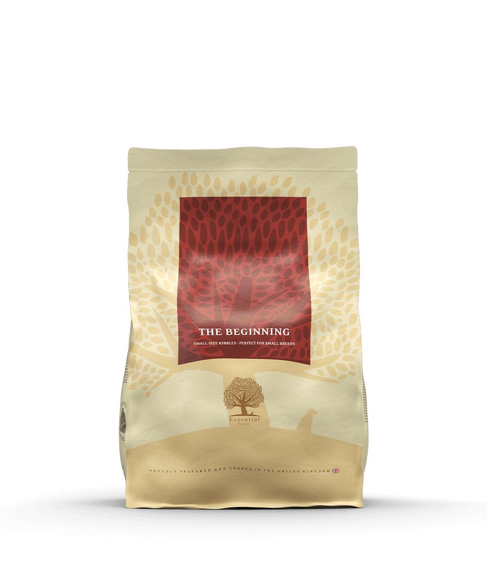 ESSENTIAL THE BEGINNING is specifiek ontwikkeld voor pups en jonge honden die als volwassen hond minder dan 15 kg gaan wegen. Het is een unieke maaltijd die bereid is met Britse scharrelkip, vrijlopende Britse eend, Schotse wild en verantwoord gekweekte zalm, Salisbury regenboogforel en verse ei.