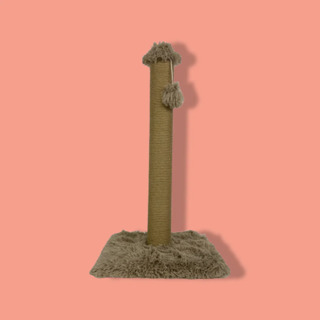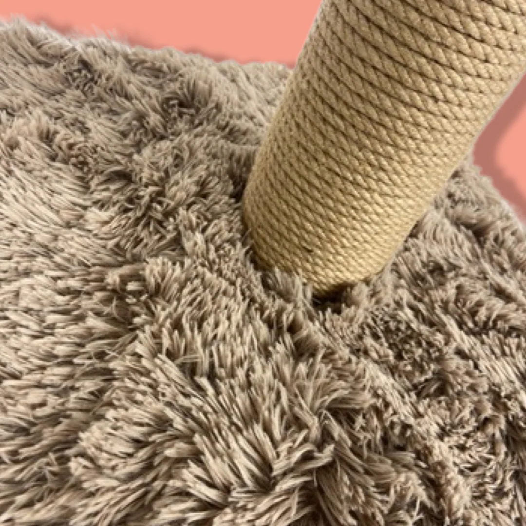 De Foeiii Krabpaal Pluche Lichtbruin is een zacht ogende krabpaal van sisal met langharig pluche en speelballetje. Deze krabpaal ziet er lekker knus uit! De voet is bekleed met langharig pluche met daarop een krabpaal omwonden met sisal. Ideaal om lekker aan te krabben; zo voorkom je ook dat jouw kat de nagels slijpt aan het interieur! Aan de krabpaal is een speelballetje van pluche aan een touwtje bevestigd om de krabpaal nog interessanter te maken voor jouw kat.