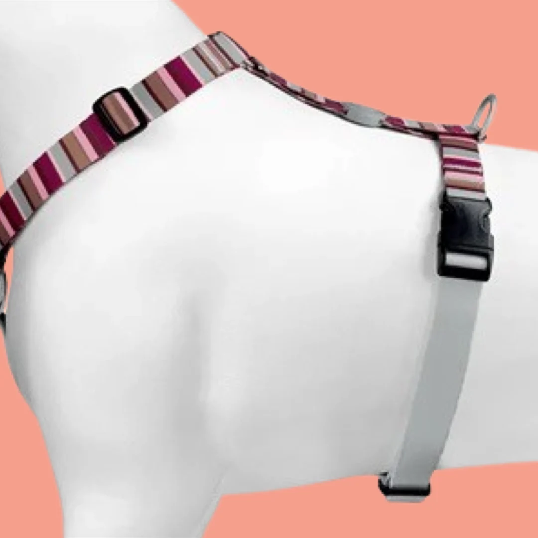 Kijk eens goed naar de levendige kleuren: een fris samenspel van diep rood, zacht roze en subtiele grijstinten vormt een opvallend gestreept patroon. Het geeft het tuig een moderne, vrolijke uitstraling die zeker de aandacht zal trekken tijdens elke wandeling. En de afwerking? Die is even doordacht en praktisch: stevige zwarte kliksluitingen maken het geheel helemaal af. Ze bieden niet alleen een geruststellende veiligheid, maar voegen ook een strak, chic contrast toe aan het kleurrijke geheel. Het is zo’n detail dat je gewoon even moet voelen, de kwaliteit zit ‘m écht in de kleine dingen, weet u wel?