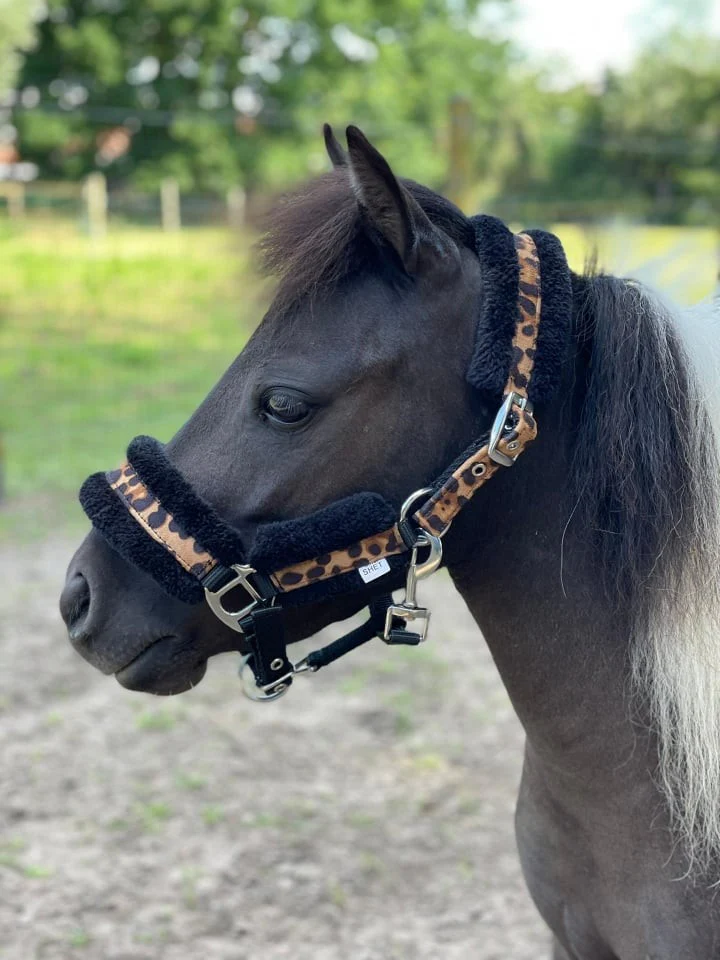 Luxe bont gevoerd halster met luipaard print