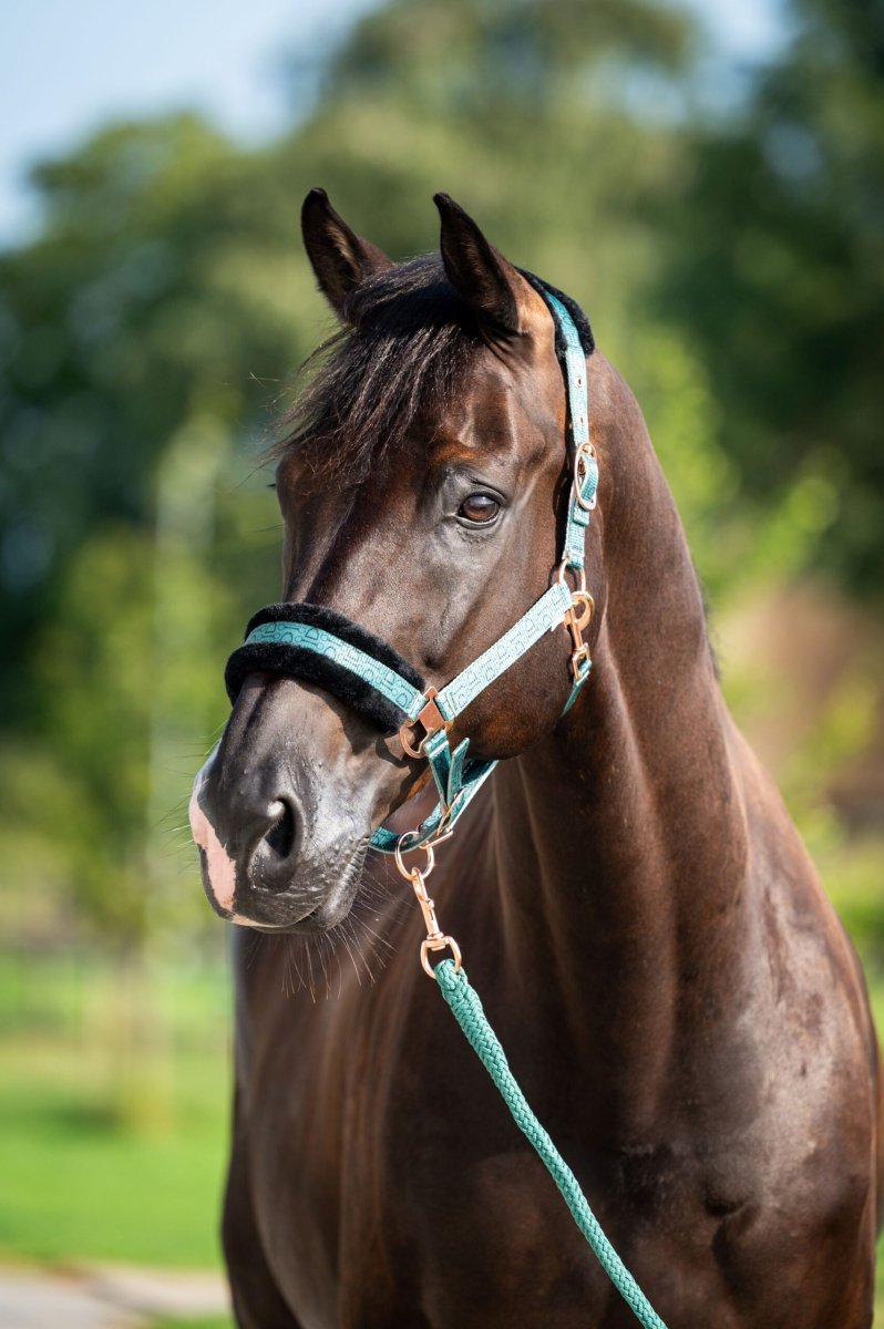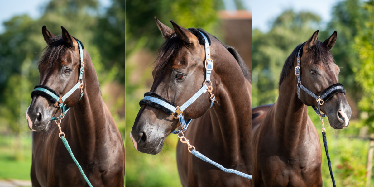 Luxe halster met mooie subtiele print met roségouden fournituren (speciale uitvoering), bijgeleverd een