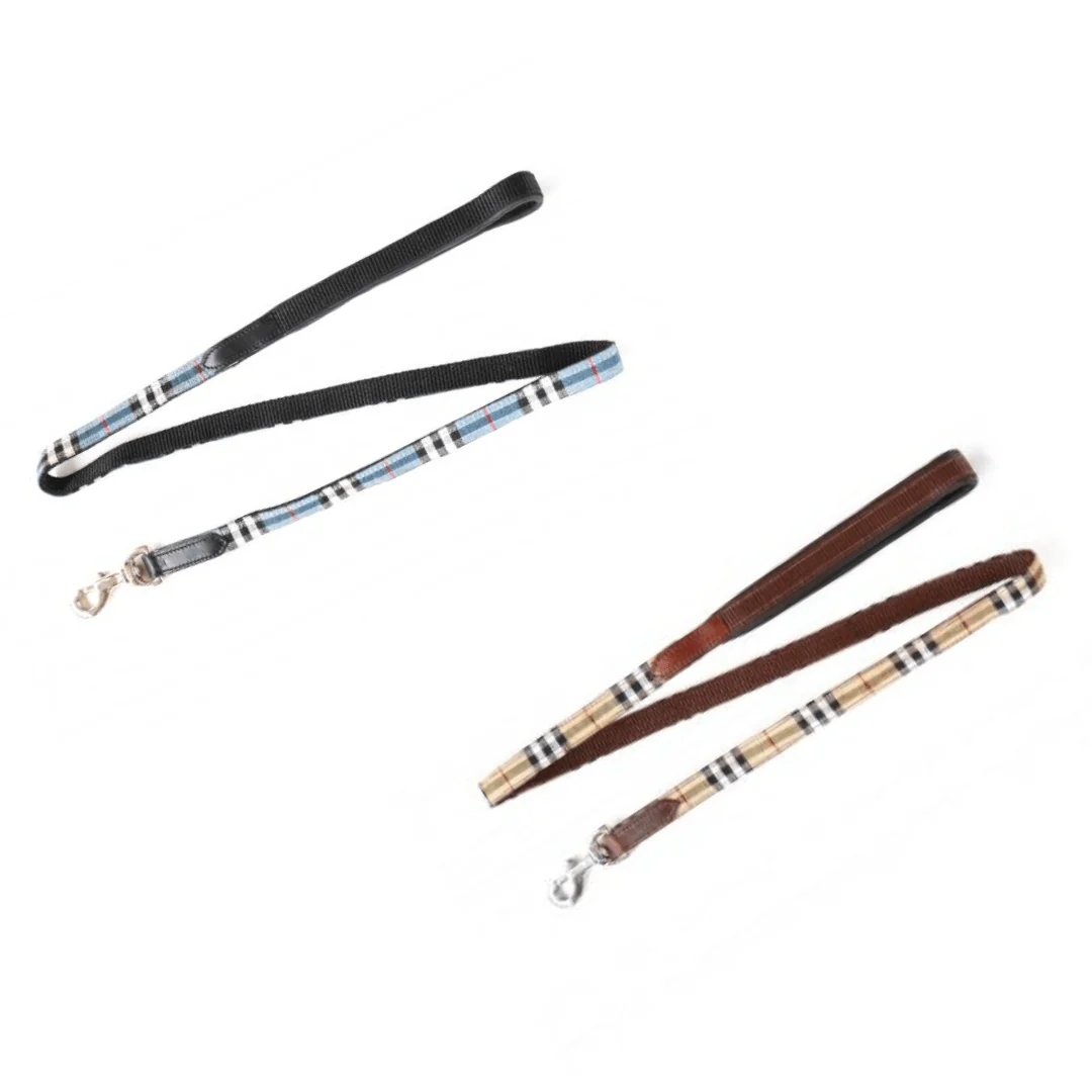 Hondenlijn met ruit motief afgewerkt met golden leder.