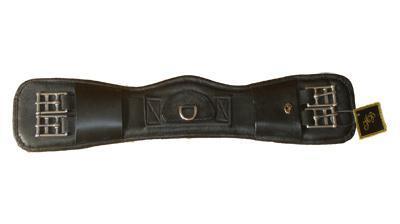 Luxe zacht gevoerde dressuur singel met aan beide zijde elastiek en in het midden verstevigd met leder en extra ring.