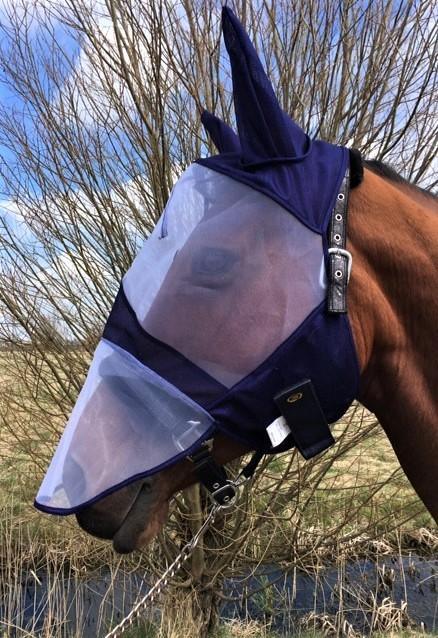Luxe vliegen kap met neusbeschermers met sluiting onder de keel