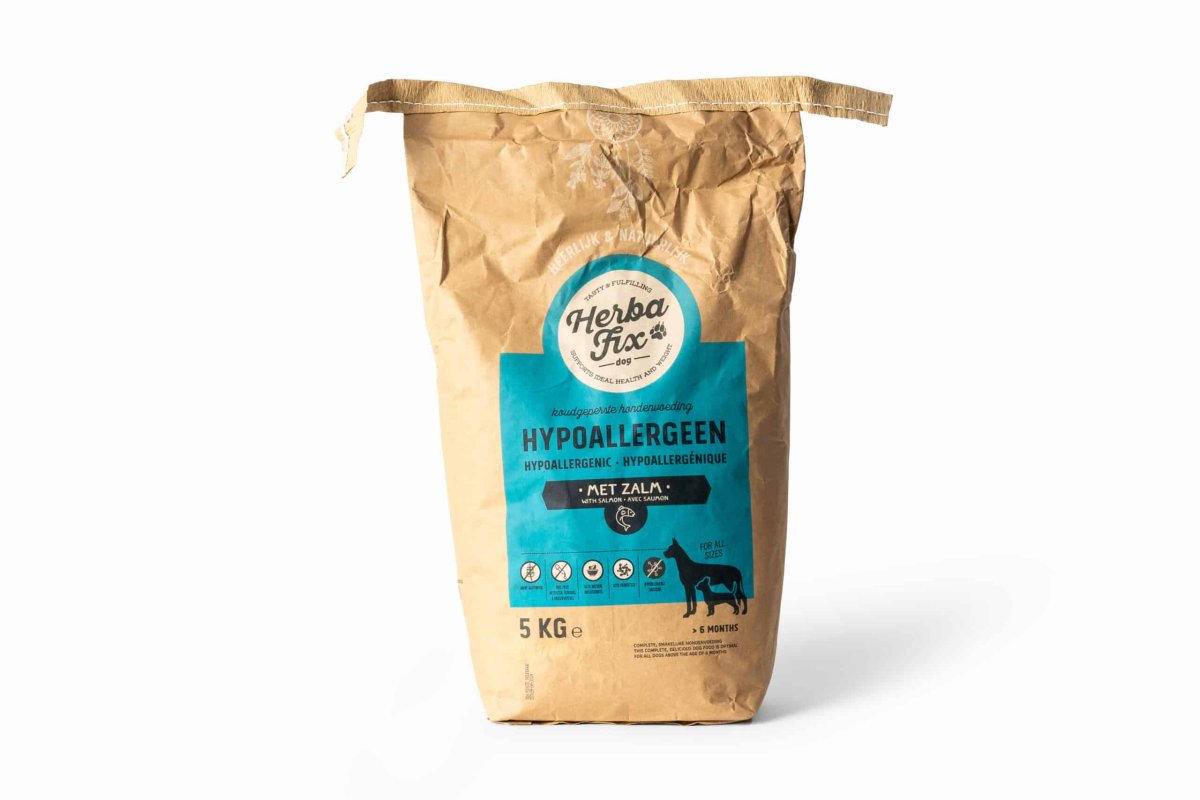 Deze hondenbrokken van Herbafix zijn speciaal ontwikkeld voor honden met een allergie. Deze Hypoallergene hondenvoeding is gemaakt met zalm welke minder kans geeft op een allergische reactie. Ook zijn deze koudgeperste brokken erg geschikt voor honden die actief zijn of extra ondersteuning nodig hebben voor hun immuunsysteem, doffe vacht of lymfestelsel.