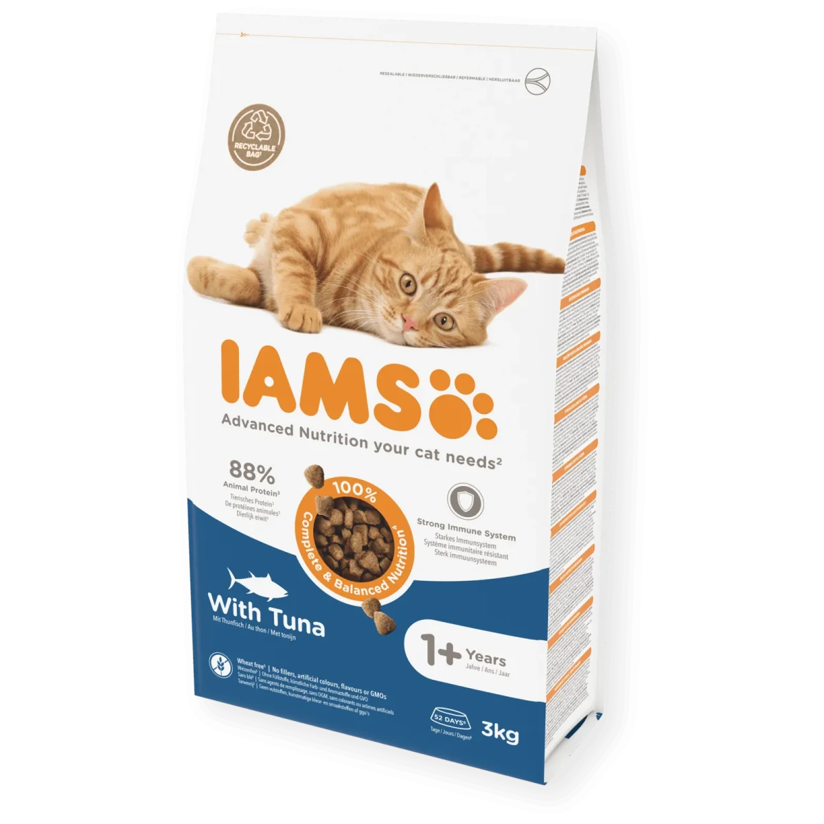 • IAMS voor volwassen katten bevat een mix van antioxidanten met vitamine E ter ondersteuning van het immuunsysteem