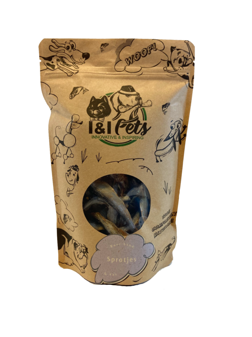 Deze heerlijke hondensnack is duurzaam gevangen op een Urkse Kotter! Het zijn 100% natuurlijke vissnacks voor honden en katten zonder toevoegingen! Wij van I & I Pets gaan voor korte lijntjes met lokaal geproduceerde producten. Voor ons telt de natuur waarbij duurzaamheid uitermate belangrijk is. Door onze producten zo lokaal mogelijk te verkrijgen veroorzaken wij zo min mogelijk vervuiling. Deze lekkere hondensnacks zijn rijk aan omega 3 & 6 en zijn op lage temperaturen gedroogd. Gegarandeerd een succes voor uw hond of kat.