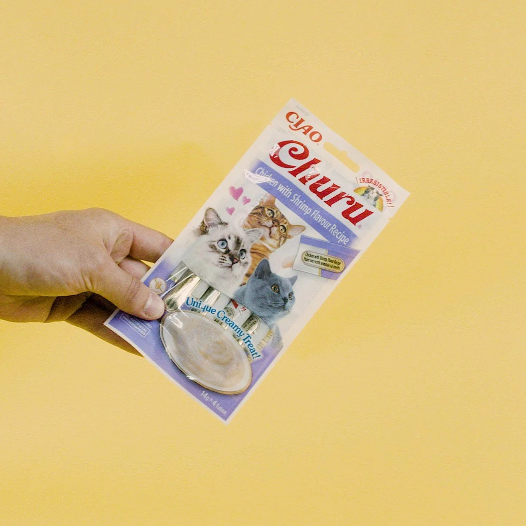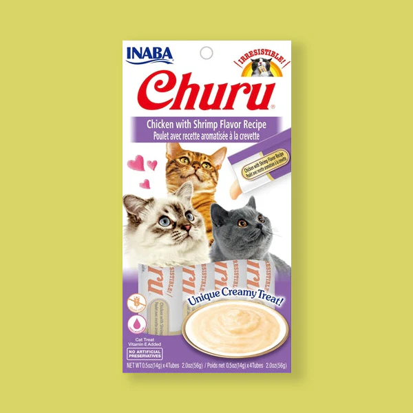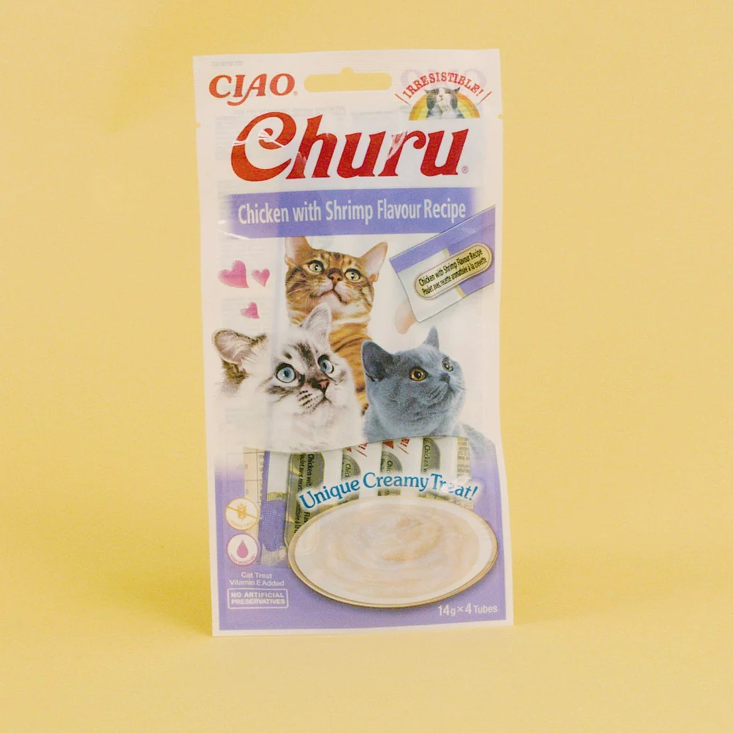 Zei er iemand churros? Neehee.. Churu, dat is nog lekkerder. Althans, volgens vrijwel alle katten. De Inaba Churu Chicken Shrimp is een heerlijke en zachte kattensnack. Veel katten drinken te weinig waardoor ze uitdrogen. Is dit ook het geval bij jouw kat? Dan is Churu echt iets voor jouw harige vriend. De kattensnack is een crème die rijk is aan vocht. Er zitten geen granen in de crème maar wel veel vitamine E. Deze heerlijke snack is dan ook purrfect voor katten die even zin hebben in iets lekkers. Er zijn talloze verschillende smaken dus er zit sowieso iets bij voor jouw maatje. Let wel op, dit is een aanvullende snack en dus geen volledige maaltijd.