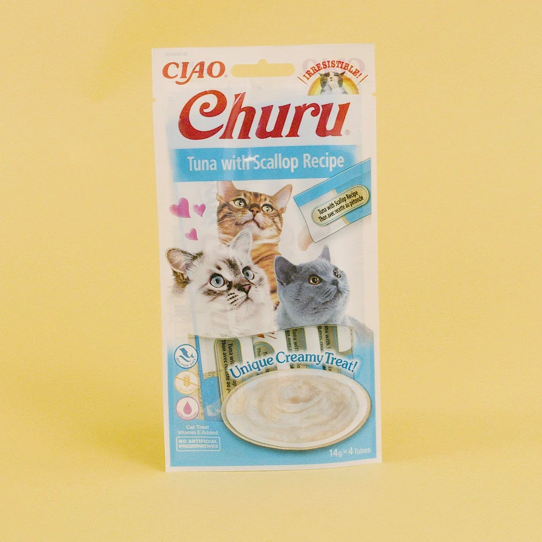 Zei er iemand churros? Neehee.. Churu, dat is nog lekkerder. Althans, volgens vrijwel alle katten. De Inaba Churu Tuna Scallop is een heerlijke en zachte kattensnack. Veel katten drinken te weinig waardoor ze uitdrogen. Is dit ook het geval bij jouw kat? Dan is Churu echt iets voor jouw harige vriend. De kattensnack is een crème die rijk is aan vocht. Er zitten geen granen in de crème maar wel veel vitamine E. Deze heerlijke snack is dan ook purrfect voor katten die even zin hebben in iets lekkers. Er zijn talloze verschillende smaken dus er zit sowieso iets bij voor jouw maatje. Let wel op, dit is een aanvullende snack en dus geen volledige maaltijd.