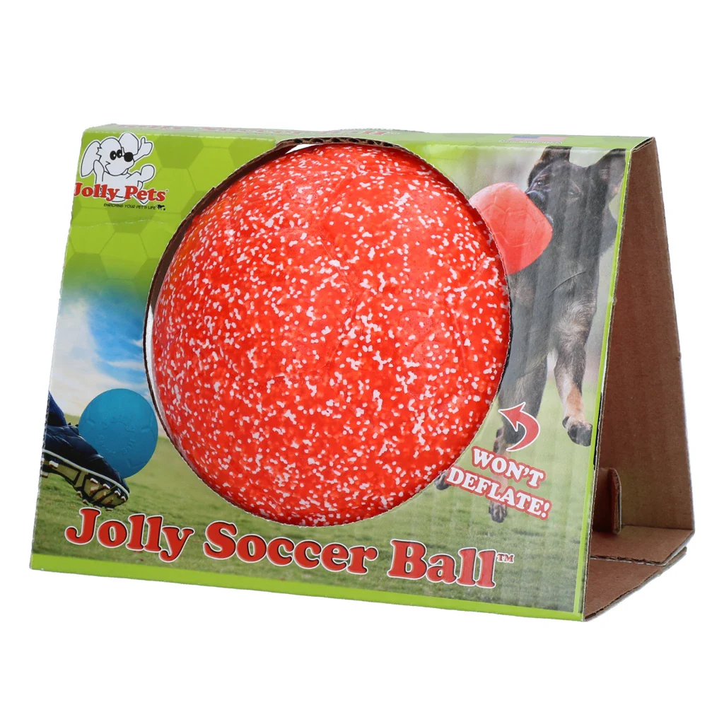 Deze voetbal voor honden stimuleert gezond bewegen en spelen. Gemaakt van supersterk Jollyflex materiaal waar een hond zijn tanden in kan zetten. De oorspronkelijke vorm blijft behouden en de Jolly Soccer Ball zal niet leeglopen. De bal drijft op water en is door zijn felle kleur goed zichtbaar.