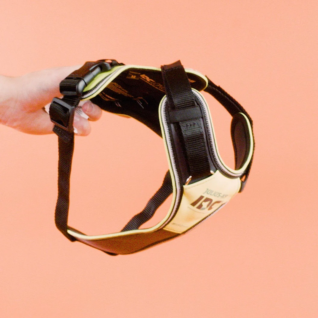 En dan die kleuren! Het levendige neon geel gecombineerd met ingetogen grijs is niet alleen een lust voor het oog, het dient ook een cruciaal doel: zichtbaarheid. Vooral tijdens schemerige ochtend- of avondwandelingen biedt dit een geruststellend gevoel. U wilt toch dat uw hond altijd goed te zien is, ook als het weer eens wat minder meezit? De zwarte accenten en gespen maken het plaatje compleet, geven het tuig een moderne en toch tijdloze uitstraling.