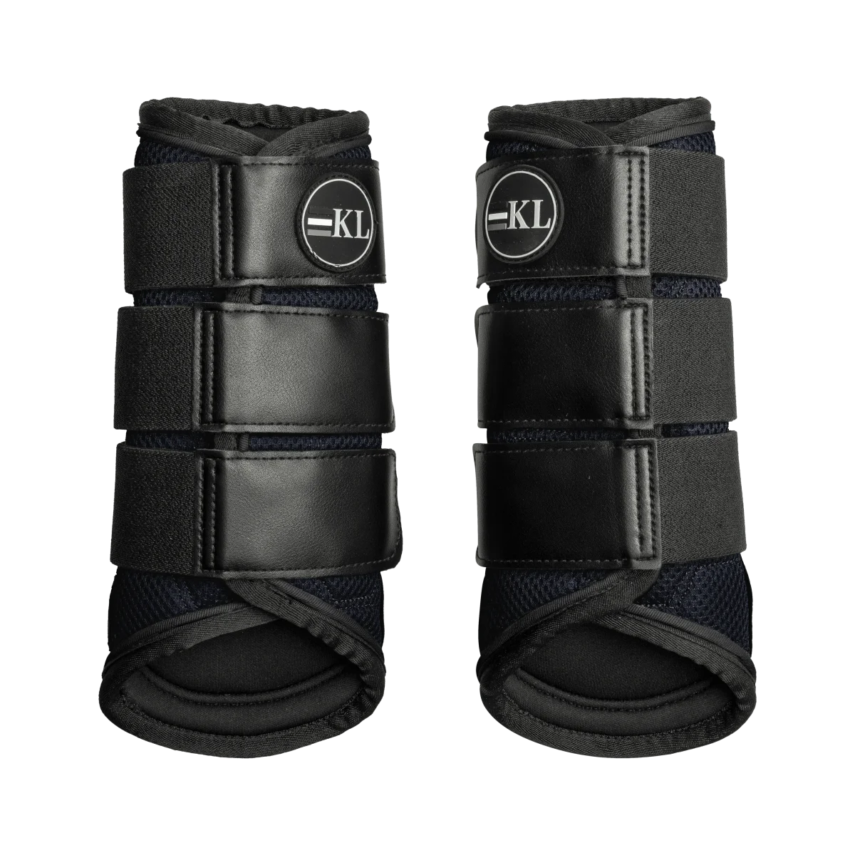 Sportieve beenbeschermers. Binnenkant in zwart neopreen. Cool zeshoekig quiltpatroon. Rubberen Kingsland-logolabel bovenaan met klittenband. Kingsland rubberen vlaglabel in de zijnaad. Zwarte nylon versteviging en nylon aan de banduiteinden.