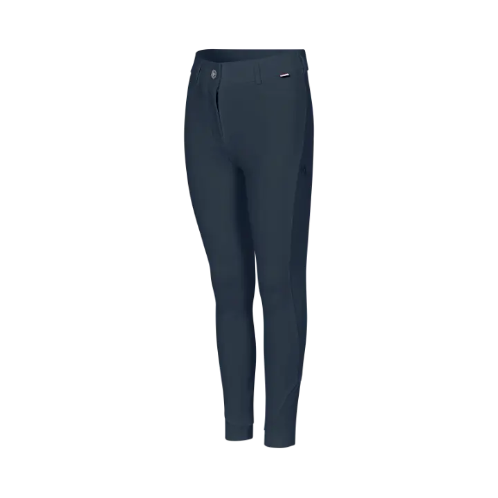 Een innovatieve benadering van high-performance rijbroeken, ontworpen om comfort en ondersteuning te bieden aan jonge ruiters in het zadel. Deze rijbroek is behandeld met Tanatex® om stof en water af te stoten en biedt verbeterde bescherming in stoffige of natte omgevingen, of het nu op het parcours, in de arena of in de stallen is. Ze zijn ademend, bieden compressie en hebben een structuur met hoge dichtheid voor verbeterde duurzaamheid. Het linkerbeen is versierd met een elegant KL-logo verfraaid met kristallen van Swarovski®, wat een vleugje glamour toevoegt aan elke paardensportlook.