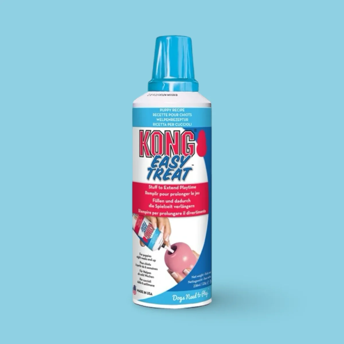 De KONG Easy Treat Puppy is ontworpen voor ultiem gemak. Houd de spuitbus ondersteboven en spuit een kleine hoeveelheid van de heerlijke pasta in het KONG speeltje. Het is zo simpel! Geen gedoe met lepels of smerige handen; alleen pure verwennerij, direct uit de bus. Ideaal voor wanneer u snel een beloning wilt geven of uw pup even rustig wilt bezighouden.