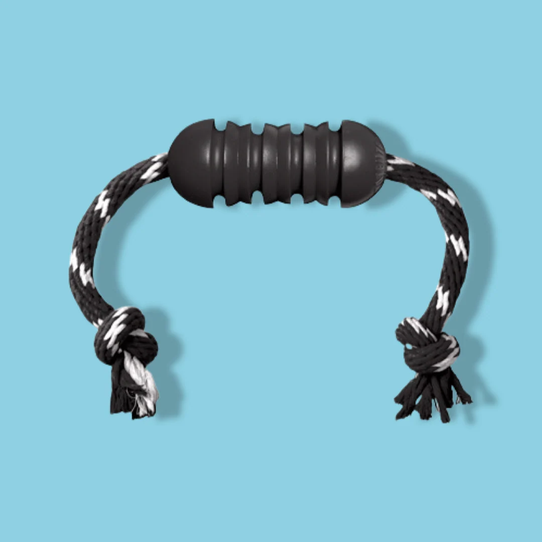 Heb je een enorme sloper in huis? Dan is de Kong Extreme Dental Met Touw Zwart Wit absoluut iets voor jou! Het is zeer sterk hondenspeelgoed van rubber en touw, om op te kauwen en mee te apporteren en te stoeien. Geloof me, dit speelgoed is vrijwel niet kapot te krijgen! Ennn.. ook nog eens geschikt voor trekspelletjes en apporteren, wat wil je nog meer? 😉