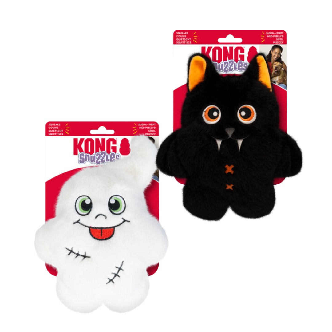 De Kong Halloween Snuzzles Assorti is pluche hondenspeelgoed, extra gevoerd, met latex binnenfiguur en pieper. Kong begrijpt honden! Dit leuke Snuzzles speeltje is daardoor onweerstaanbaar voor jouw hond. Het speeltje is gemaakt van gevoerd pluche, met aan de binnenkant nog een extra latex figuur voor een onweerstaanbare piep. De pluche buitenkant is verstevigd met extra naden voor meer duurzaamheid. Dit artikel wordt assorti geleverd, online geen keuze mogelijk.