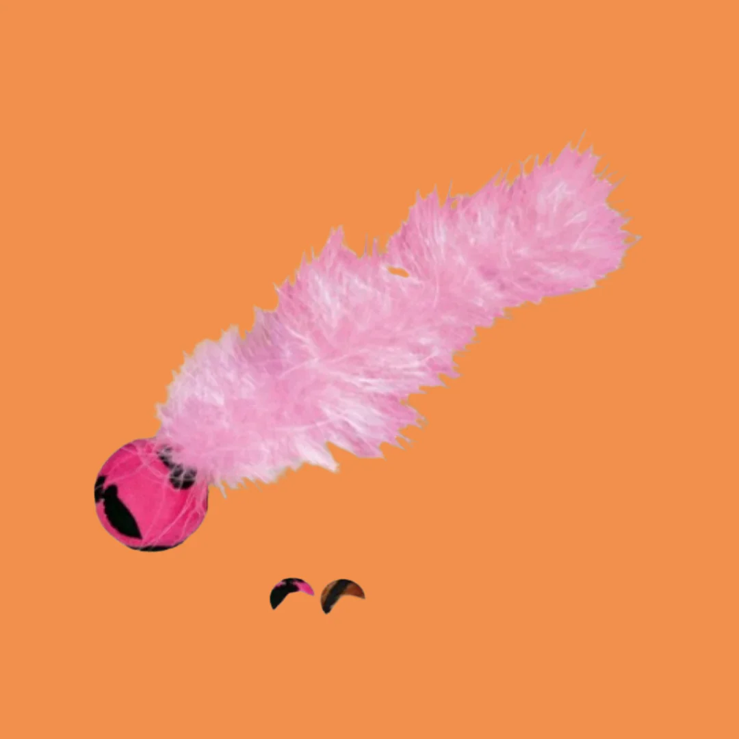 U vindt er bijvoorbeeld dat gestreepte exemplaar, zo’n klassieker, met zijn intrigerende zwarte verenstaart – perfect voor een snelle prooi-simulatie, weet je wel? En dan is er die roze variant, met zijn vrolijke pluimen en een bal die zó vol zwarte vlekken zit, dat het haast lijkt te leven, gewoon smeekt om een tikje. Of wat dacht je van dat KONG Wild Tails speeltje met die aardsbruine bal, compleet met zo’n heerlijk lange zwarte staart die bij elke zwaai uitnodigt tot de meest enthousiaste jachtpartijen door de woonkamer.