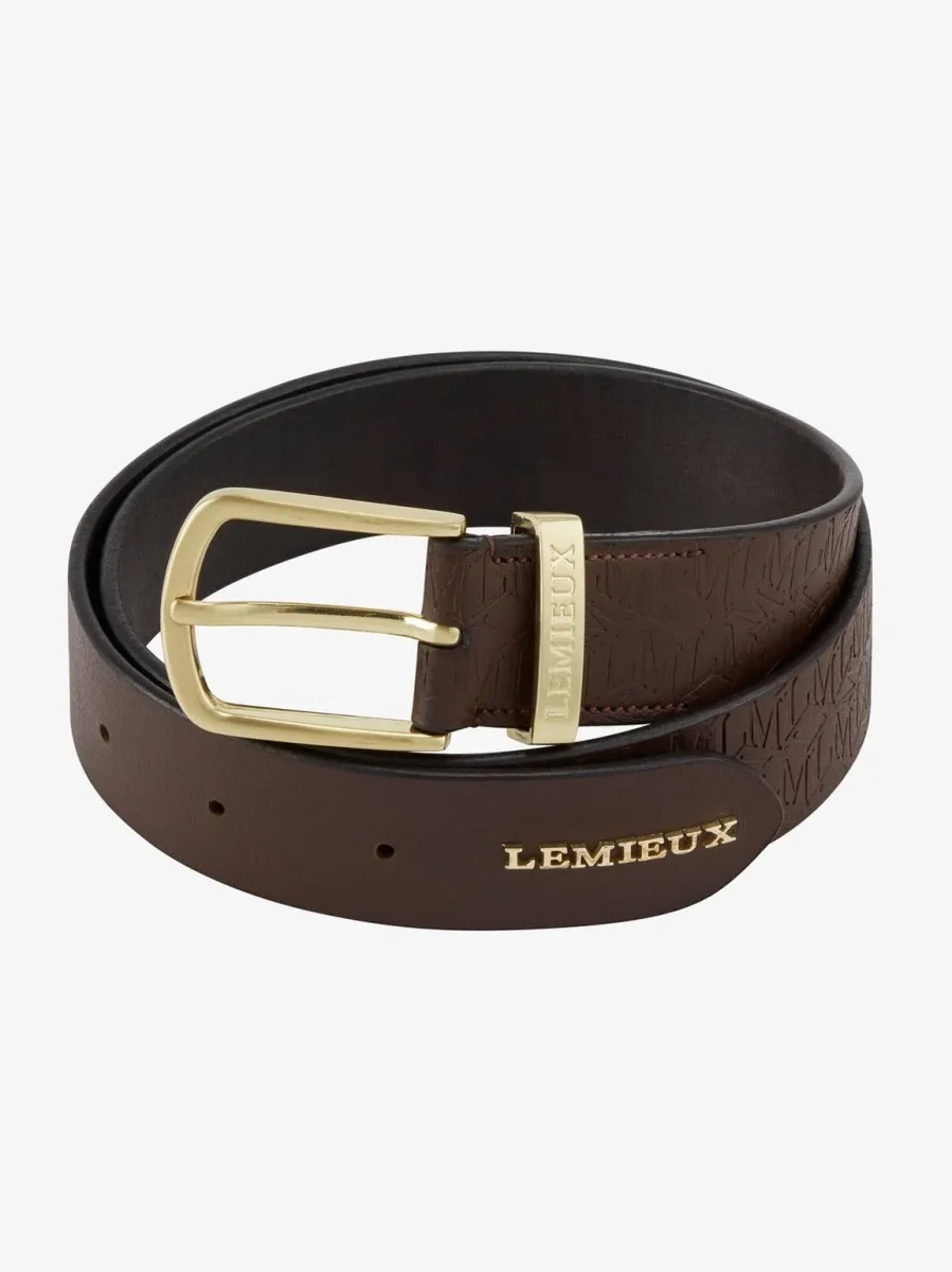 Deze 100% lederen riem is een zacht, soepel en premium accessoire om je paardrijkleding af te maken. Afgewerkt met een satijnen geborstelde metalen gesp en houder, wordt hij versterkt door een statement debossed print en verhoogde metalen letters, die veel stijl toevoegen aan je favoriete paardrijoutfits.