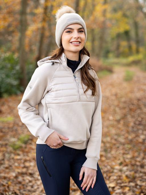 De royale capuchon heeft geborduurde LeMieux kraagdetails voor een elegante, sportieve look. Een metalen ritstrekker met merkaccent en een subtiel merkaccent op de borst maken de look af.