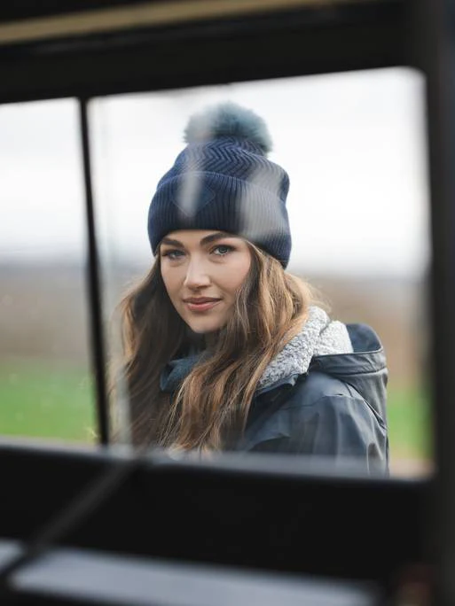 Blijf warm bij koud weer met deze rijk gekleurde muts. Een zacht fijn gebreid chevronpatroon met een geribbelde omslag en een warme voering van imitatiebont houdt koude tocht op afstand. Een afneembare pompon van imitatiebont zorgt voor een extra winterse finishing touch.