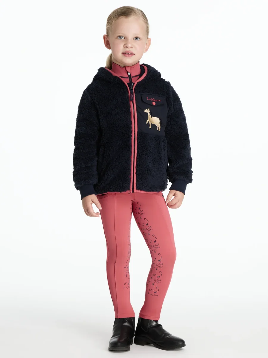 De Mini Teagan Fleece is de ultieme winter musthave voor avonturen buiten. Hij is gemaakt van luxe teddybeerfleece en gevoerd met fleece. Hij is niet alleen ongelooflijk zacht, maar biedt ook uitzonderlijke warmte om kleine avonturiers warm te houden bij koud weer .Met praktische kenmerken zoals een ruime capuchon, diepe ingestikte zakken en een stijlvol geborduurd LeMieux logo op de mouw, is deze fleece niet alleen functioneel, maar ook een stijlstatement. De warme capuchon maakt het perfect om lekker warm te blijven op koude dagen, zodat kleintjes de weersomstandigheden kunnen trotseren en er moeiteloos cool uitzien.