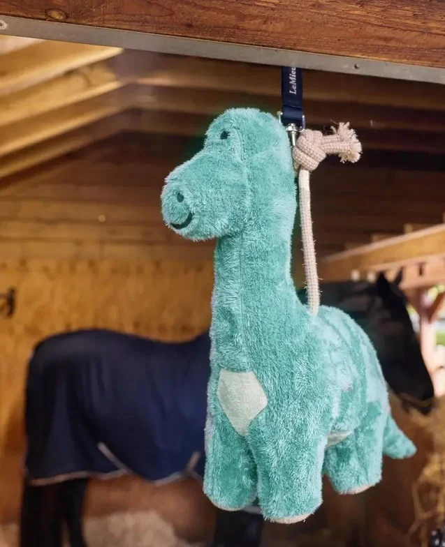 Houd je paard bezig met dit schattige en zachte pluche dinosaurus of Lama paardenspeeltje! Ideaal tegen verveling, dit speelgoed combineert plezier met een veilige, natuurlijke samenstelling.