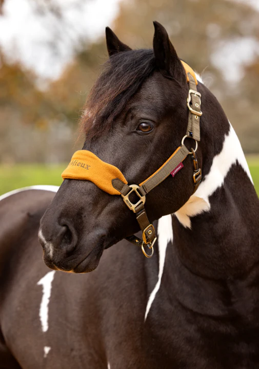 “Onze Vogue Headcollar is een heerlijk zacht hoofdstel met fleece inzetstukken bij de keelriem en neusriem.